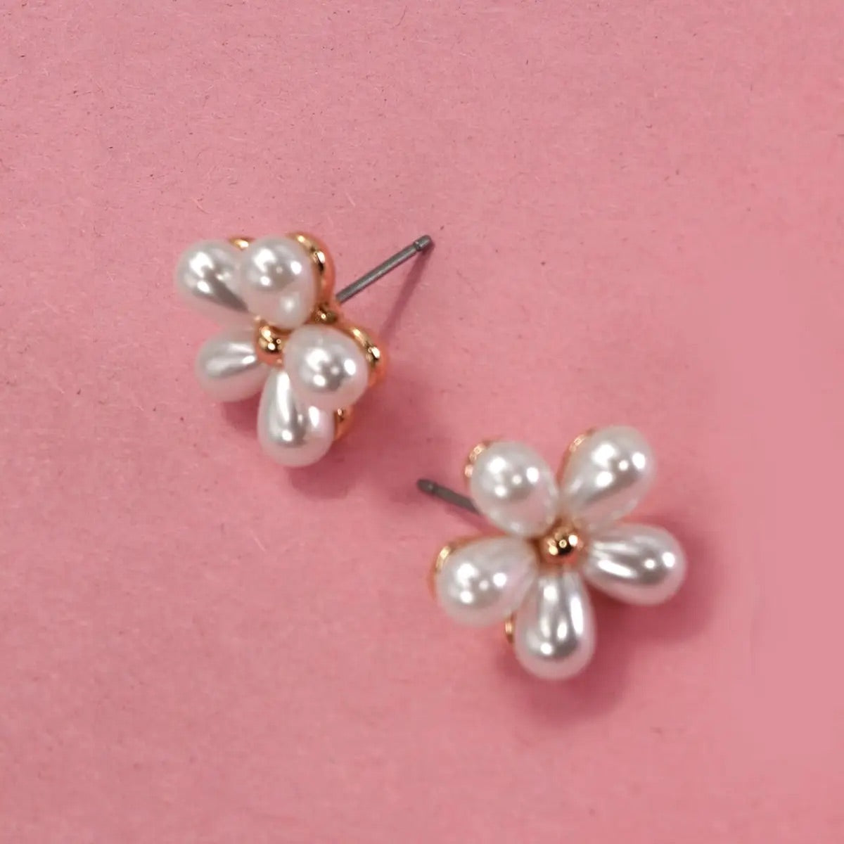 Pearl Daisy Flower Stud Earrings, featuring delicate daisy petal accented with lustrous pearls, creating a charming and lovely look. The titanium posts ensure durability and hypoallergenic wear, making them suitable for sensitive ears.